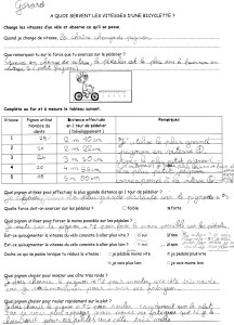 – Etude de la vitesse : distance parcourue relative au pignon choisi