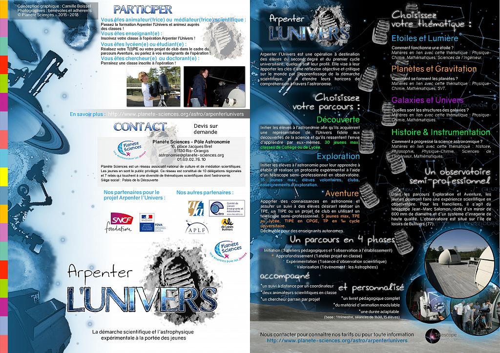 Arpenter l’Univers vise à faire découvrir la démarche expérimentale en astronomie et le monde qui entoure notre planète aux jeunes en milieu scolaire.