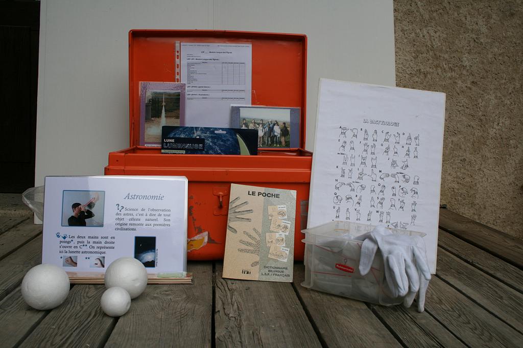 La malle d’astronomie en Langue des Signe consiste en un ensemble d’outils à utiliser dans les différentes situation d’animation : soirée de découverte, séquence courte d’animation, mini-stage ou séjour. Elle est facilement transportable et peut être emportée sur les différents lieux d’animation.