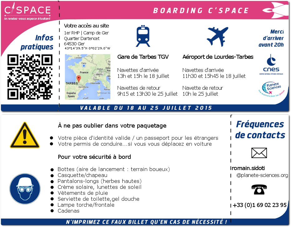 La Campagne Nationale de lancements, appelée C’Space, organisée par le CNES et par Planète Sciences, a eu lieu du samedi 18 au samedi 25 juillet 2015 sur le site de l’Armée de Terre du camp de Ger, à proximité de Tarbes (64).