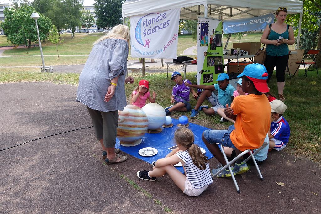 Du 07 au 12 août 2017, la ville de Châlons-en-Champagne a accueilli l’opération « Espace dans Ma Ville ». C’est la bibliothèque Denis Diderot située dans le quartier du Verbeau qui abrité les différents ateliers scientifiques de l’événement. Plus de 730 jeunes provenant notamment des centres sociaux de la ville se sont relayés sur les animations du lundi au vendredi. Cette édition a été un franc succès grâce à l’implication des différents acteurs. Le programme de la semaine a été enrichi par deux conférences et une soirée d’observation du ciel.