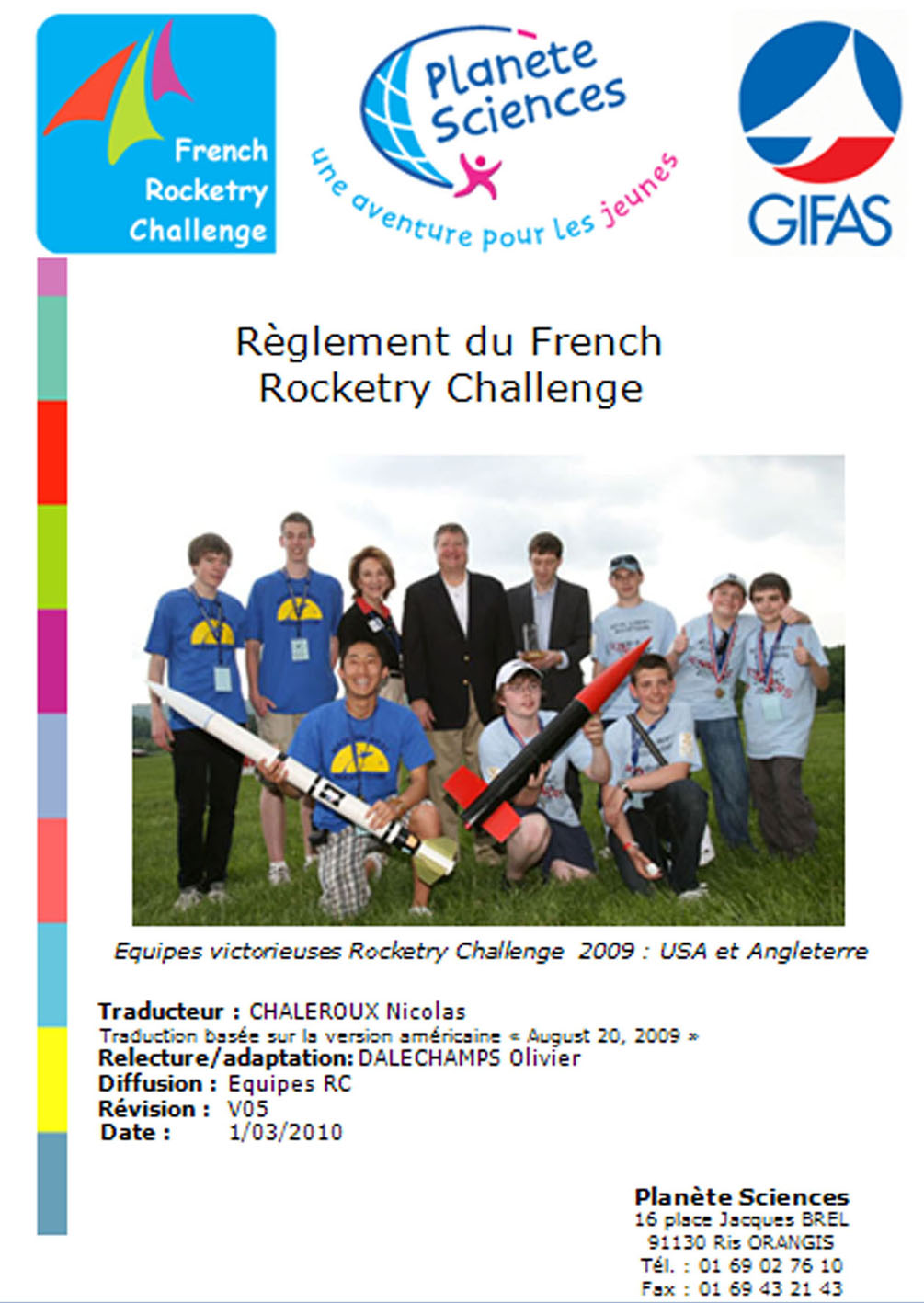 La fusée devra aussi être conforme cahier des charges minifusée Rocketry Challenge, repris dans la fiche de contrôles.