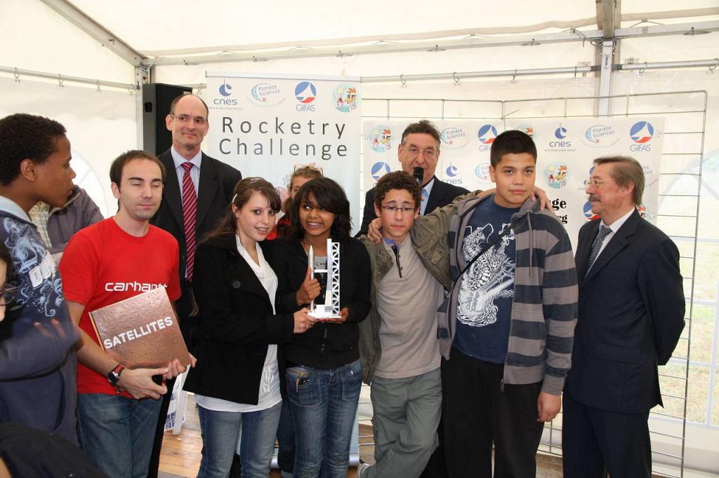 Lors de la Finale internationale du Rocketry Challenge qui s’est déroulée les 19 et 20 juillet derniers à Farnborough (Angleterre), l’équipe française CASSIOPEE 2 est arrivée à la seconde place, à 3 petits points de l’équipe Américaine. Leur fusée a atteint l’altitude quasi parfaite de 801 pieds pour un objectif de 800 pieds. Il faut également saluer leur prestation orale en anglais (15/20). Nous tenons à féliciter ces jeunes du Lycée Sud Médoc !
