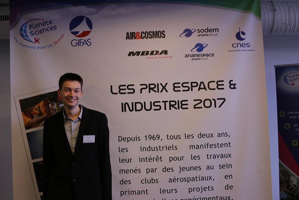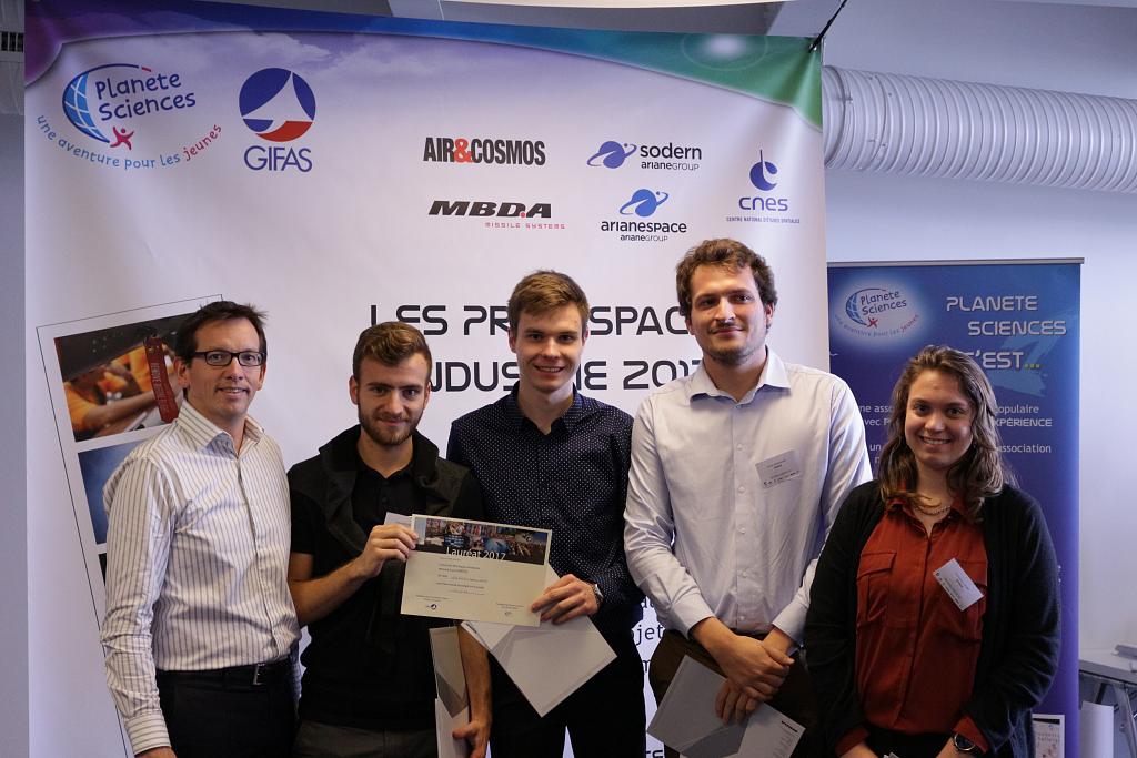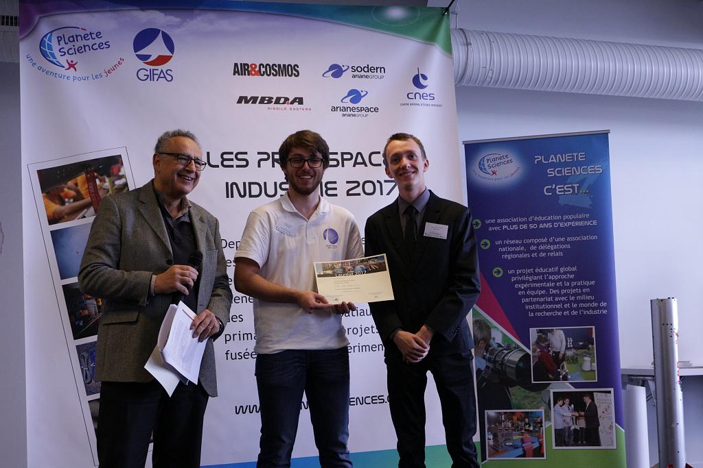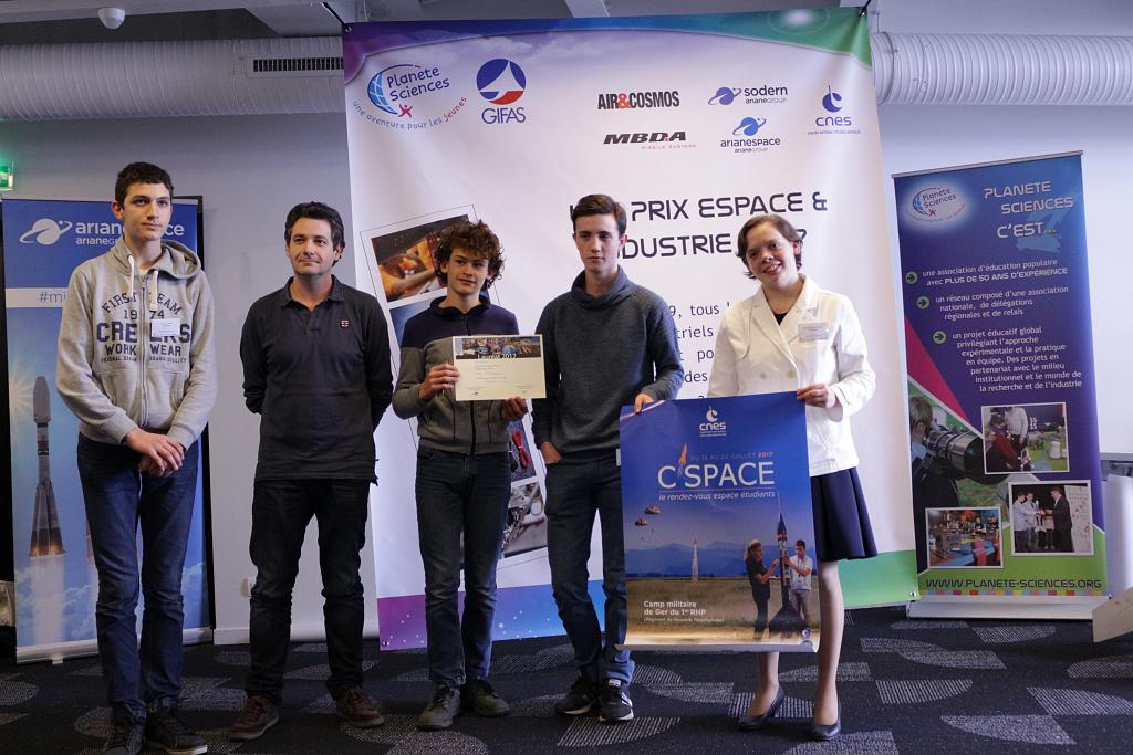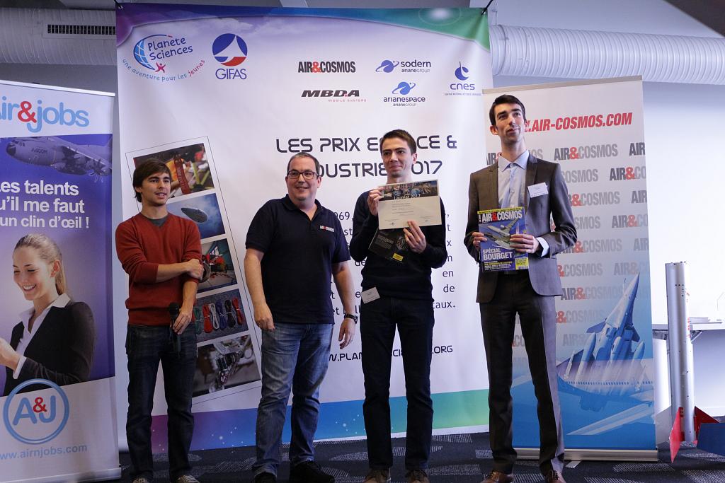 Samedi 16 décembre 2017 a eu lieu la remise des XXVème prix Espace et Industrie dans les locaux du magazine Air & Cosmos à Paris. Neuf équipes ont été retenues pour présenter leurs projets scientifiques et techniques à un jury d’industriels des secteurs aéronautique et spatial. Ils manifestent ainsi leur intérêt et leur soutien aux travaux et initiatives de jeunes passionnés par les activités spatiales.