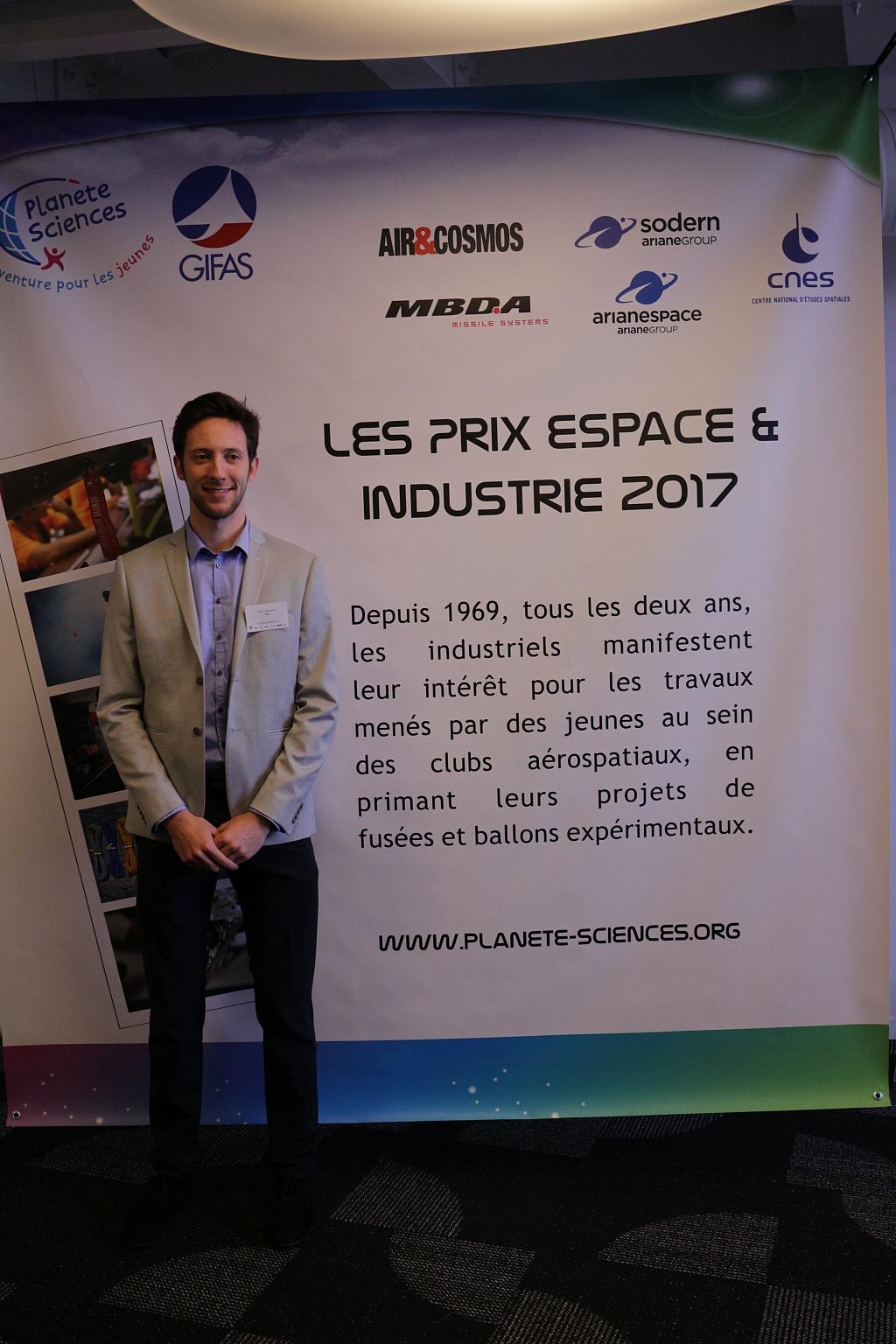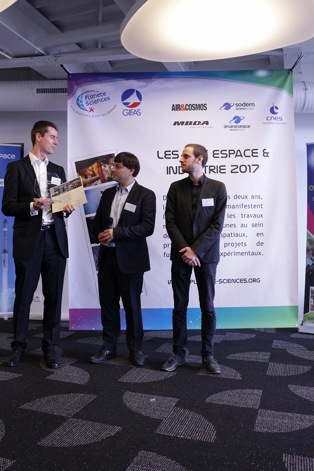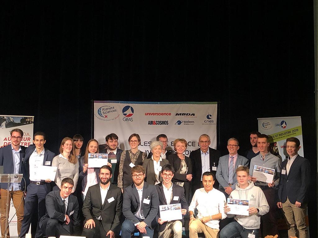 Samedi 16 décembre 2017 a eu lieu la remise des XXVème prix Espace et Industrie dans les locaux du magazine Air & Cosmos à Paris. Neuf équipes ont été retenues pour présenter leurs projets scientifiques et techniques à un jury d’industriels des secteurs aéronautique et spatial. Ils manifestent ainsi leur intérêt et leur soutien aux travaux et initiatives de jeunes passionnés par les activités spatiales.