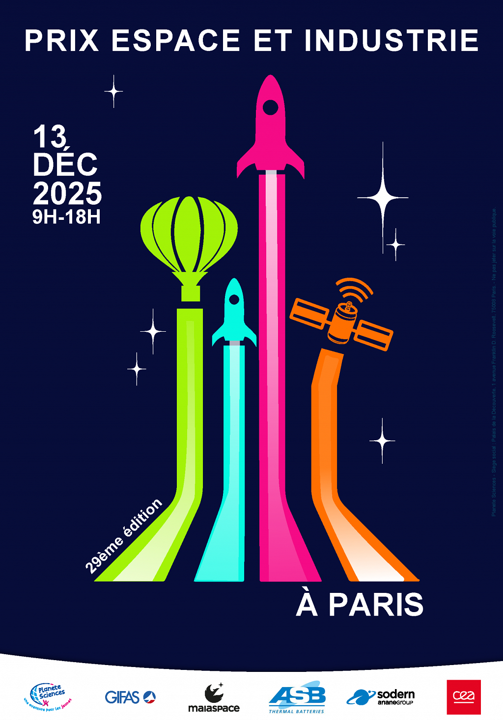 À l’issu des lancements de fusées et des largages CanSat lors des campagne C’Space 2024 et 2025, ainsi que des lâchers de ballon UBPE et BallonBUS entre 2024 et 2025, Planète Sciences et le GIFAS invitent les clubs et les établissements à la 29 ème édition des Prix Espace et Industrie le samedi 13 décembre 2025.