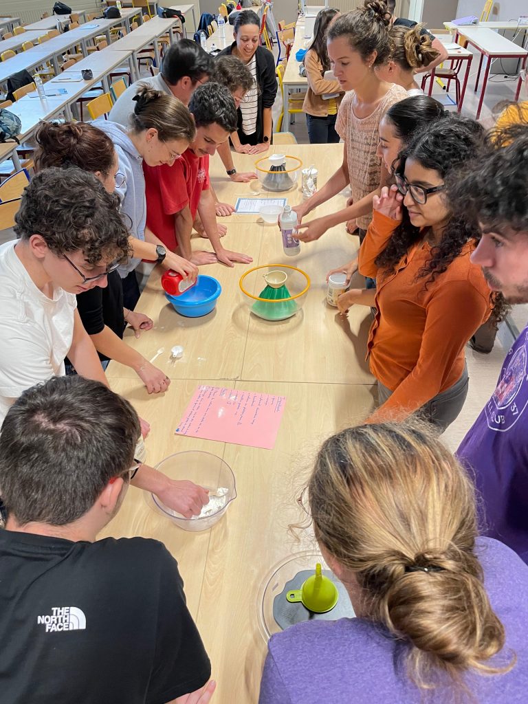 Le week-end s’est déroulé sous le signe de l’expérimentation. Dès l’accueil, les présentations ont laissé place à la première mise en situation, où chacun a pu tester son aisance face au groupe. Au fil des activités, les participant.es ont exploré les différentes facettes de la médiation scientifique, alternant théorie, ateliers pratiques et jeux pédagogiques. L’animation de la fameuse fusée à eau a fait sensation : un moment où chacun.e a pu expérimenter, ajuster et apprendre en direct.